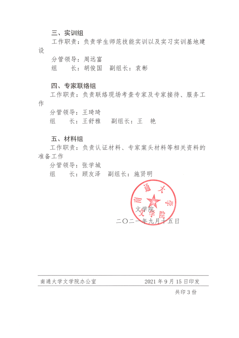 【通知】关于成立汉语言文学(师范)专业认证工作组的决定