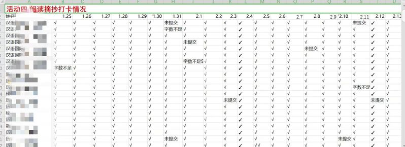 据悉,1月25日至2月18日期间,公司面向全体员工开展了持续25天的寒假“云”打卡自律行动。此次活动依托微信群、QQ群等平台,以线上打卡的形式进行记录监督,分为专业素养、英语学习、身体素质、启迪智慧四大板块。在前期准备中,每个板块均建立相应的QQ群,整理参与人员名单、制定评比规则、精准跟踪员工打卡情况。同学们对这些板块踊跃报名,积极参与,成功参与的同学至少参加两个板块,且每个板块至少打卡21天,形成了“你追我赶”“相互帮助”“携手并进”的良好学习氛围。活动达到了预期的效果,起到“21天效应”。