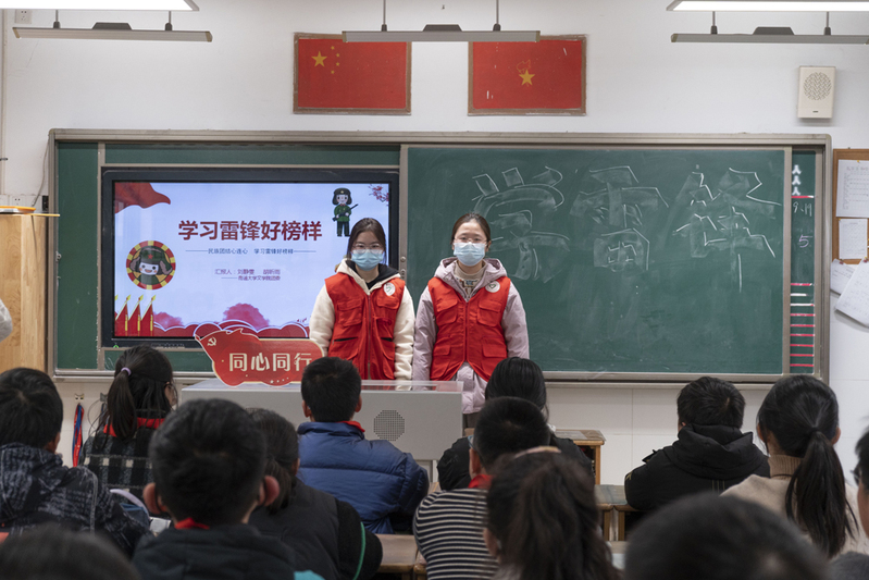 “七彩课堂”志愿服务团队成员以“寻雷锋足迹,扬志愿精神”为主题召开班会。志愿者们向孩子们介绍了“七彩课堂”志愿服务团队的缘起、发展历程,通过故事短片、案例分享深入浅出地普及了雷锋生平、学雷锋纪念日的由来以及雷锋事迹等知识。在互动环节,孩子们根据情景进行角色扮演,积极参与抢答雷锋事迹、雷锋精神等知识,主动分享曾经做过的好人好事并表达切身感受。活动期间,孩子们还捐出100余本带有拼音字母的儿童绘本、故事书等书籍。这些书籍拟通过南通赤子情华侨图书馆捐赠给海外想要学习中文的华侨同胞们,助力中华文化走出国门、走向世界。