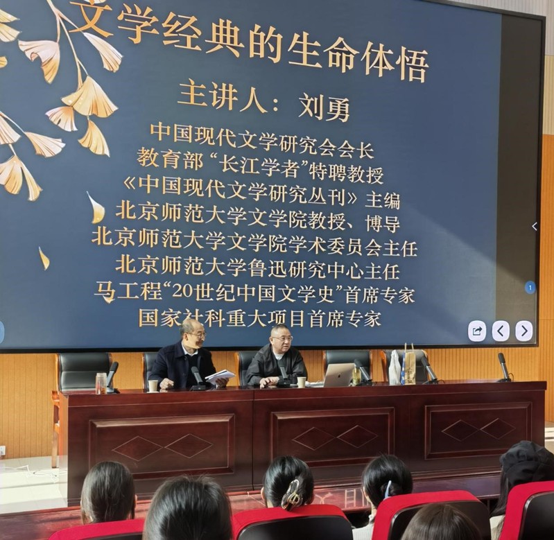 3月31日下午,中国现代文学研究会会长、教育部“长江学者”特聘教授、北京师范大学刘勇教授,应邀做客公司“精进论坛”,为师生做题为“文学经典的生命体悟”的学术讲座。