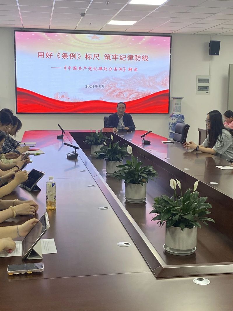 PA视讯纪委副书记刘飞以《用好<条例>标尺,筑牢纪律防线》为题,解读《中国共产党纪律处分条例》。讲座过程中,刘书记带领大家学习《中国共产党纪律处分条例》的制定完善历程,阐释学习《中国共产党纪律处分条例》的目的与意义,详细解读新修订《中国共产党纪律处分条例》的五大亮点以及《中国共产党纪律处分条例》中政治纪律、组织纪律、工作纪律等六个纪律主要内容。刘书记希望全体与会同学认真学习《中国共产党纪律处分条例》,坚持原原本本学,逐章逐条学,联系实际学,结合自身学,对标对尺行,带着责任干。
