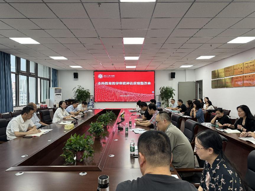 最后,教学经理施贤明传达了预评估专家的反馈结果。他详细回顾了预评估过程中的各个环节,包括专家组的评估指标、调阅教学资料、座谈访谈以及最终的意见反馈等。同时,他也对预评估工作中发现的问题进行了深入剖析,制定了详细的整改方案和时间表。