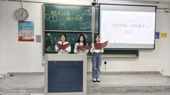 此次活动的第二部分为线下“诗歌颂恩情”活动。47位来自PA视讯的同学齐聚教学楼3号楼104,为大家朗诵了以感恩为主题的诗歌。他们声情并茂的朗诵,使文学与感恩融为一体,感人肺腑,也让更多人理解感恩的意义和价值,让感恩的种子在校园中茁壮成长。