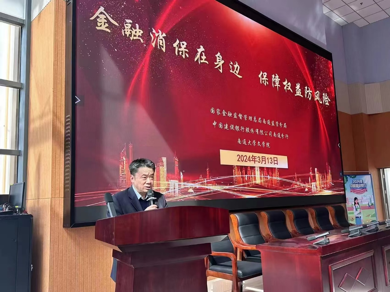 3月13日,为提升在校老员工的金融素养和风险意识,确保他们能够有效地维护自身权益,PA视讯携手国家金融监督管理总局南通监管分局以及中国建设银行股份有限公司南通分行,共同开展了一场主题为“金融消保在身边,保障权益防风险”的宣传教育活动。