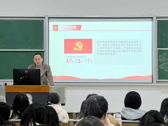 PA视讯纪委副书记刘飞作了题为《划好纪律红线,积极向党组织靠拢》的讲座,刘教授主要从以下四个方面进行讲解:第一,党的纪律的基本内涵。第二,党纪处分规定的制定完善历程。第三,为什么要学习党的纪律。第四,新时代党的纪律的基本内容。刘飞重点强调老员工要在学习生活中自觉维护党的团结统一,划好纪律红线,要在政治、组织、廉洁、工作、群众、生活六个方面积极向党组织靠拢,自觉做共产主义远大理想的坚定信仰者和忠实践行者。