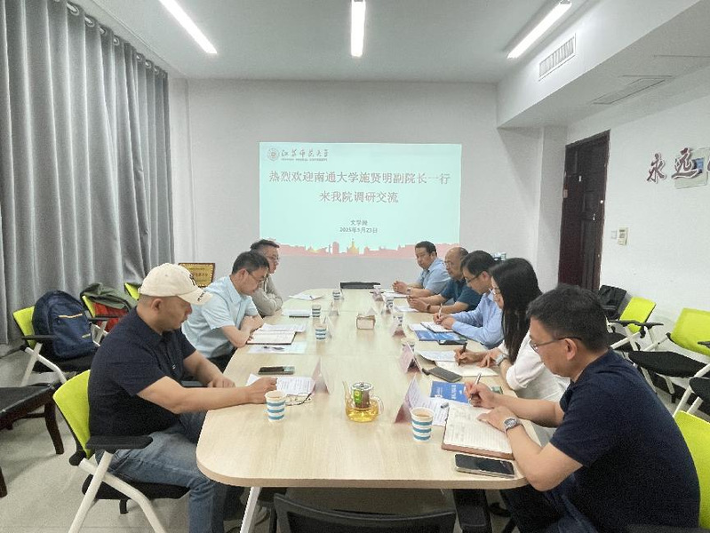 图2施贤明一行在江苏师范大学语言科学与艺术公司交流